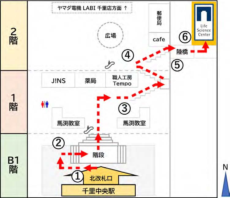 - ①千里中央駅の北改札口を出場します。